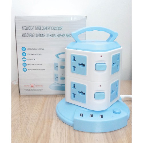 - Ổ cắm điện đa năng đươc thiết kế thông minh với 2- 3 - 4 - 5 tầng dạng tháp đẹp mắt. Tích hợp 20 - 16 - 12 -8 ổ cắm đa năng hỗ trợ 6 loại phích cắm khác nhau, đồng thời tích hợp 3 cổng sạc qua cân cắm USB phổ biến với dòng sạc lên đến 2.1A.