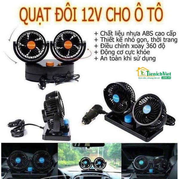 [FREESHIP] QUẠT ĐÔI 12V, 24V XOAY 360 ĐỘ CHO Ô TÔ, XE HƠI TIỆN DỤNG