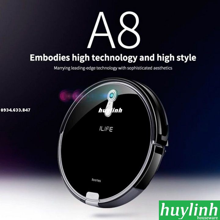 - Robot hút bụi cao cấp iLife A8 là chiếc máy hút bụi và lau nhà rất thông minh khi tích hợp khả năng định vị bằng Camera PanoView 360 4D, đồ họa CV-SLAM.