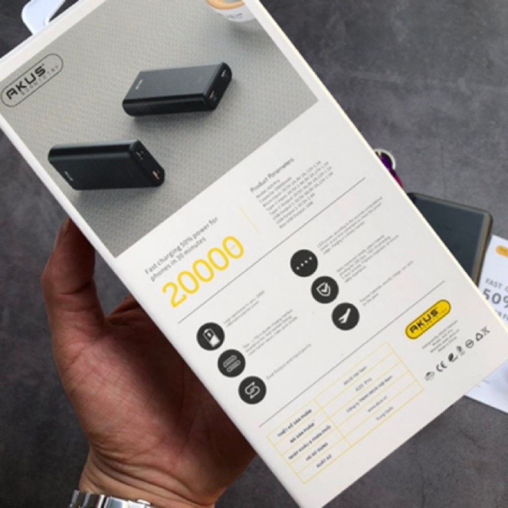 Giới thiệu [ FREESHIP ] Sạc dự phòng Akus A20 Pro 20000 mAh - sạc nhanh QC 3.0 cho IPhone, IPad, Samsung và nhiều dòng máy
