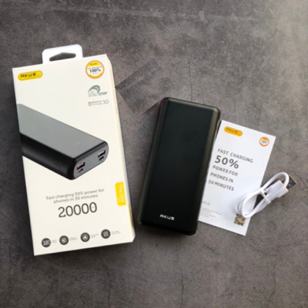 [ FREESHIP ] Sạc dự phòng Akus A20 Pro 20000 mAh - sạc nhanh QC 3.0 cho IPhone, IPad, Samsung và nhiều dòng máy