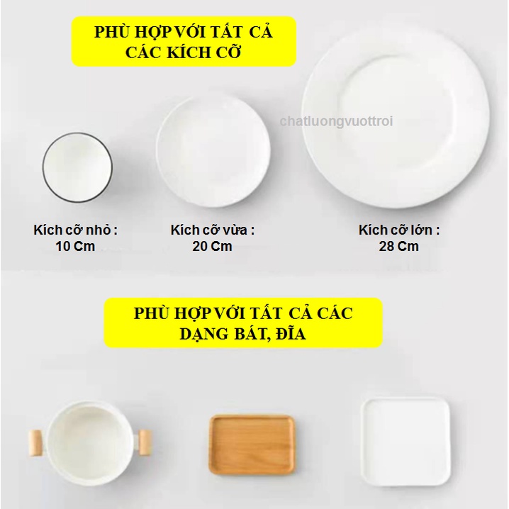 - Thiết kế đặc biệt thông minh, có bo chun ở viền co giãn thoải mái phù hợp với nhiều loại kich thước như: hộp, đĩa, bát,.. đựng thực phẩm.