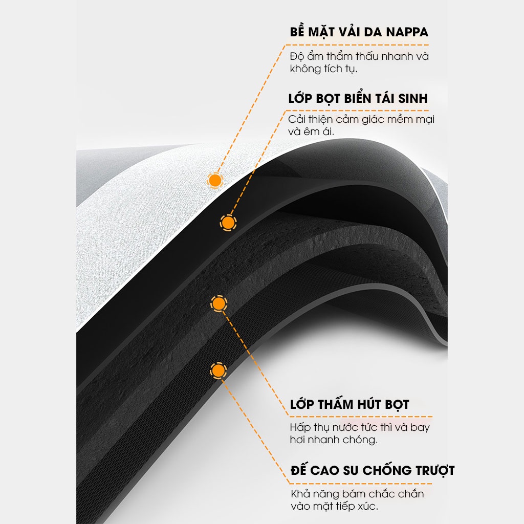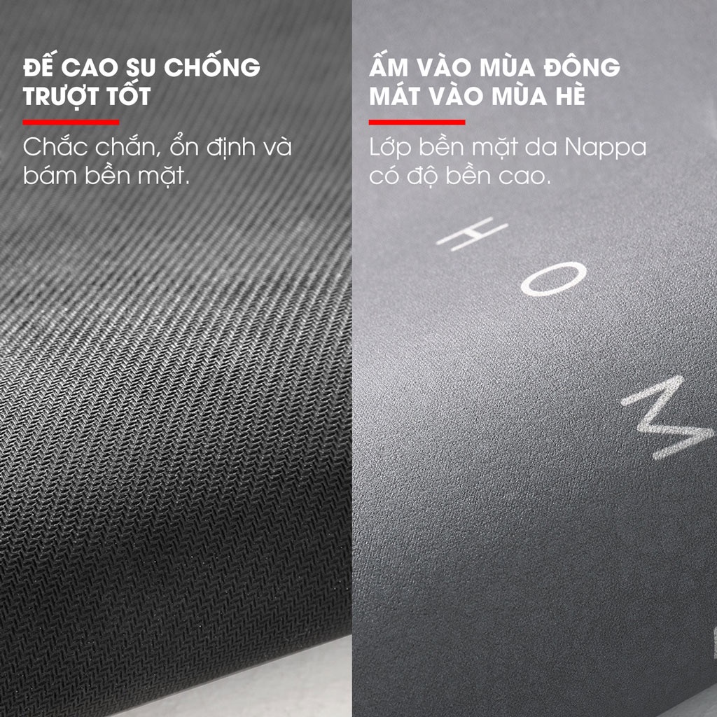 Bề mặt là da napa & cao su non silicon, độ bền cao. thâm hút tốt