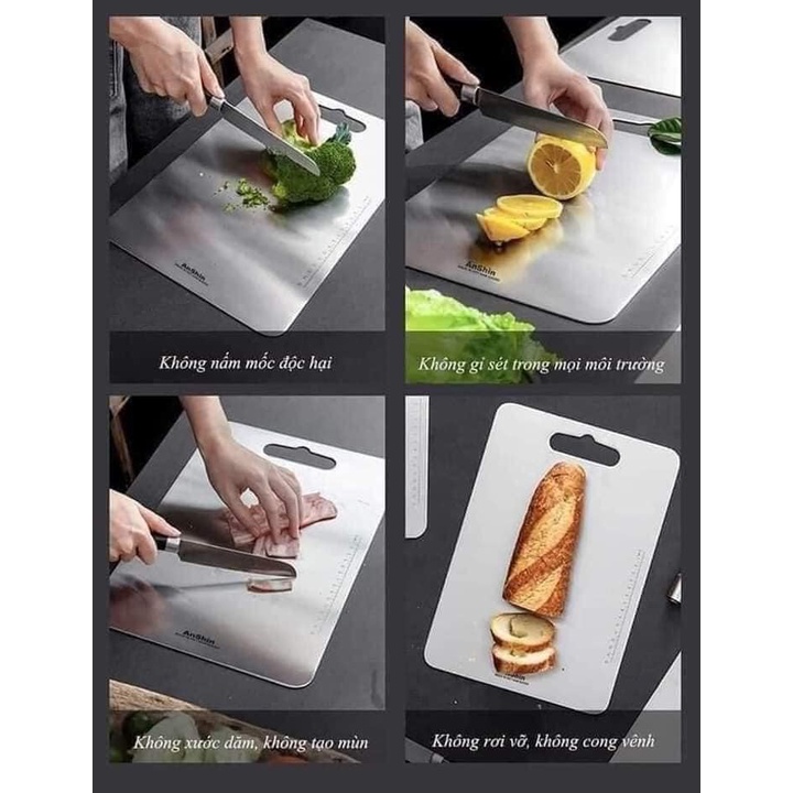 TẠI SHOP MÌNH: FREE SHIP TỪ ĐƠN 49k NHA CẢ NHÀMô tả sản phẩm: THỚT INOX 304 size 24x34cm - KHÁNG KHUẨN - Cao cấp CƯỜNG LỰC - CHỐNG ẨM MỐC – Không han gỉ