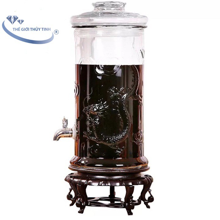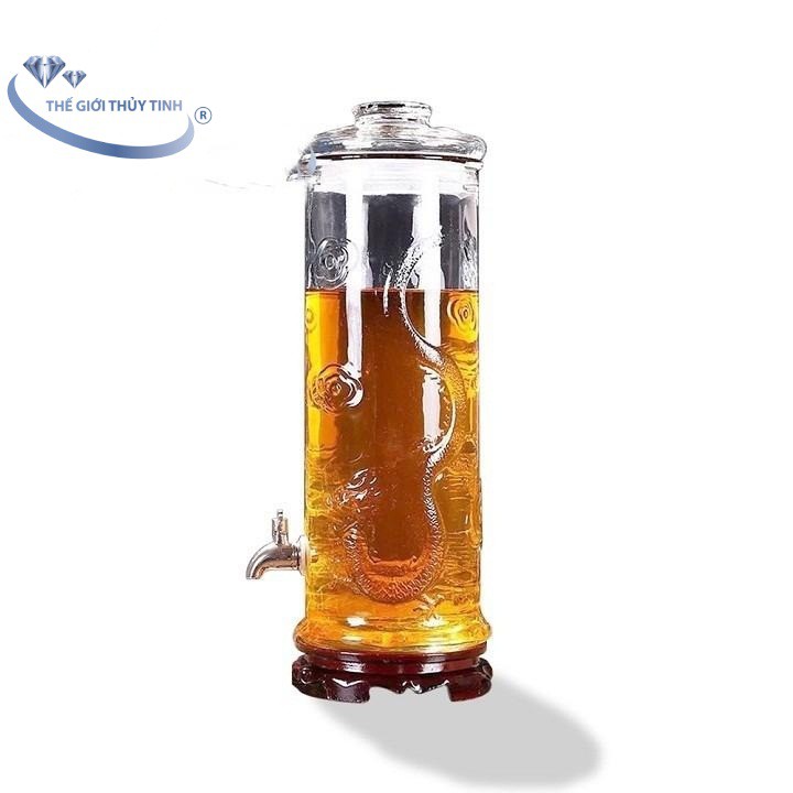 Nhà cửa & Đời sống > Bộ đồ bàn ăn > Bình nước & phụ kiện || FREESHIP TOÀN QUỐC 50K - Bình Ngâm Rươu Sâm Thủy Tinh Dáng Trụ Hoa Văn Rồng Cẩm Đạt 25 LítCòn hàng
