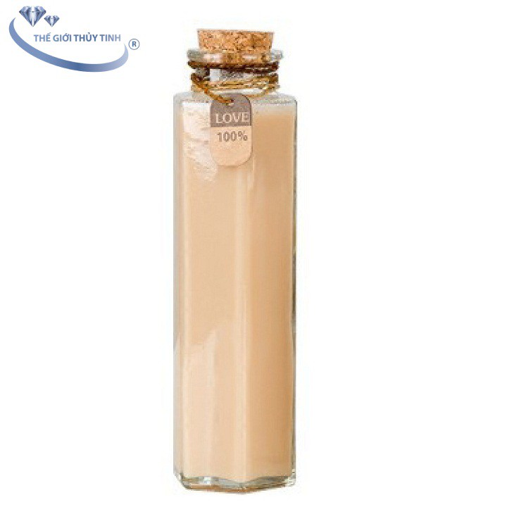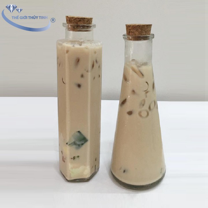 Chai thủy tinh lục giác nút bần 350ml thường dùng đựng nước ép trái cây, sữa, sinh tố, trang trí quán ăn, quán cà phê…