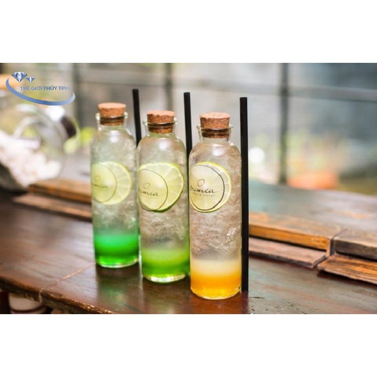 Chai thủy tinh tròn nút bần 350ml được cửa hàng trà sữa quán cà phê rất ưu chuộng nhờ kiểu dáng bắt mắt và an toàn chất lượng.
