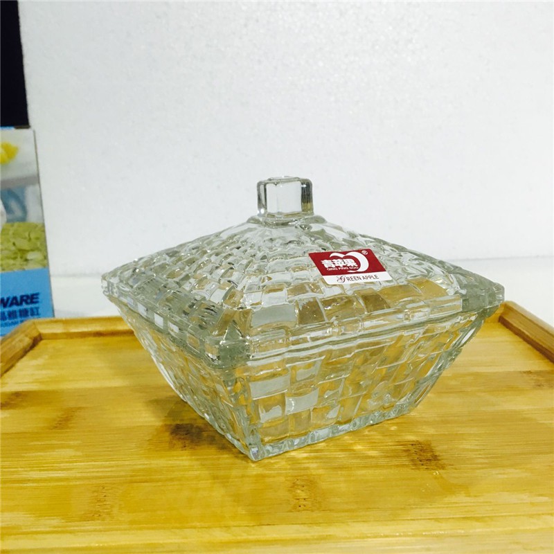 Combo 4 Thố Mứt Thủy Tinh Ca Rô Pha Lê Deli TG1035Chiều cao lun nắp: 9.5cm