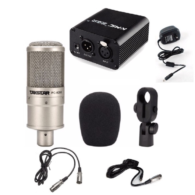 COMBO MIC THU ÂM TAKSTAR PC-K200 + XOX K10 full phụ kiện bao gồm:1.Mic thu âm takstar K200 và dây kết nối mic 3,5 bông lọc mic và kẹp đầu mic