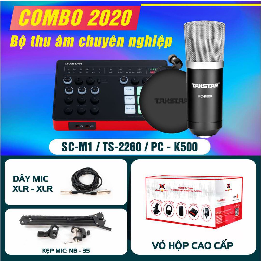 Combo mic thu âm TAKSTAR, Sourd card SC M1, micro PC K500, BẢO HÀNH 12 THÁNG