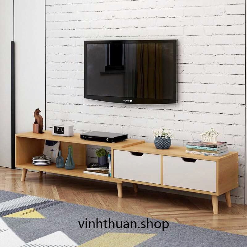 Kệ có thể kéo dài hoặc thu ngắn, phù hợp với nhiều không gian và diện tích phòng khách to nhỏ khác nhau