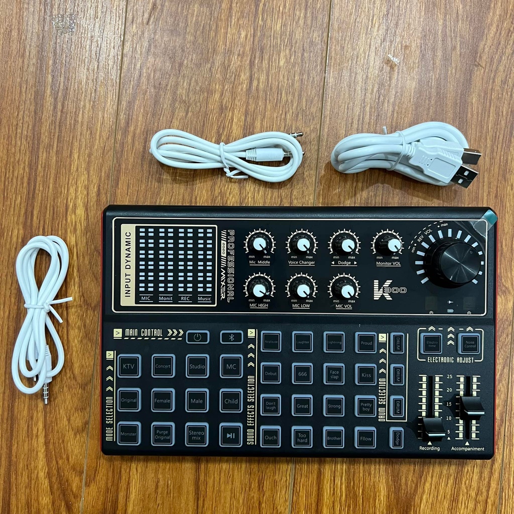 Trang bị viên pin tích điện mỗi lần sạc đầy có thể sử dụng từ vài tiếng, có thể mang đi mọi nơi đi chơi, du lịch ngoài trời không cần sử dụng nguồn điện trực tiếp- Chế độ Auto-Tune hát hay hơn với nhiều tùy chỉnh tông nhạc theo bài hát- Chế độ giả giọng người già, trẻ em- Hiệu ứng âm thanh khán giả (tiếng cười, vỗ tay, reo hò, nhạc nền,…. )- Sound card K300 tương thích với nhiều thiết bị âm thanh như smartphone, laptop, pc, máy tính bảng,…- Đặc biệt Sound card K300 có thêm chế độ kết nối Bluetooth với điện thoại để phát nhạc- Tương thích tốt với nhiều dòng micro thu âm phổ biến hiện nayGiá BTRS