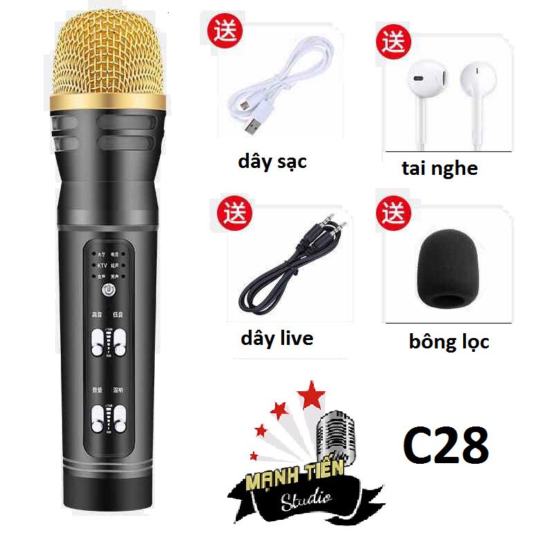[FULL PHỤ KIỆN] Mic C28 thu âm, hát karaoke, livetream tiktok,bigo - thiết kế nhỏ gọn, sang chảnh