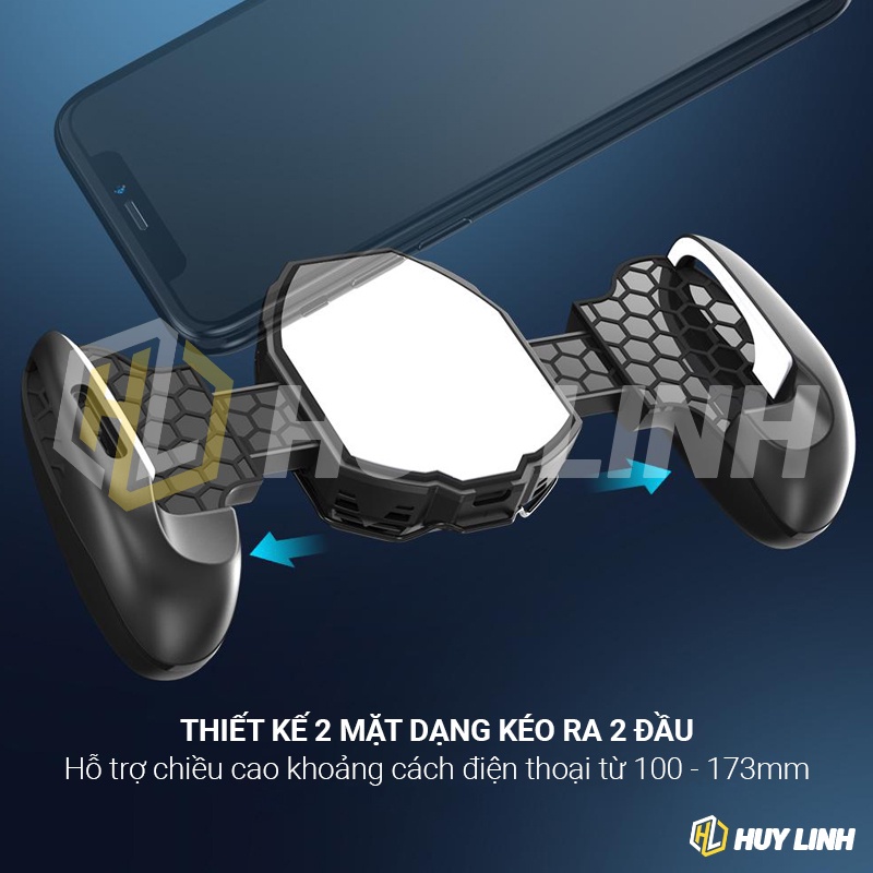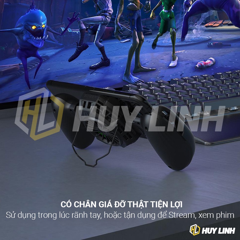 - Công dụng: Sò lạnh tản nhiệt, Giá đỡ điện thoại, Báng tay cầm chơi game, Nút Joystick cảm ứng chống mồ hôi