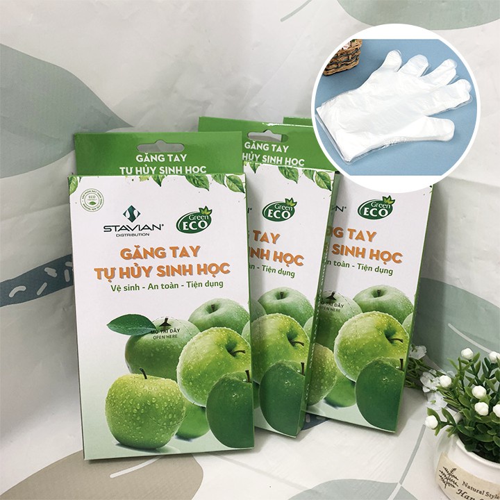 Găng tay tự hủy sinh học ,an toàn, không chứa hóa chất độc hạiGăng tay tự huỷ sinh học ecook, làm bằng chất liệu nhựa sinh học, tự phân huỷ dần sau 24 tháng, thân thiện môi trường, an toàn người dùng.