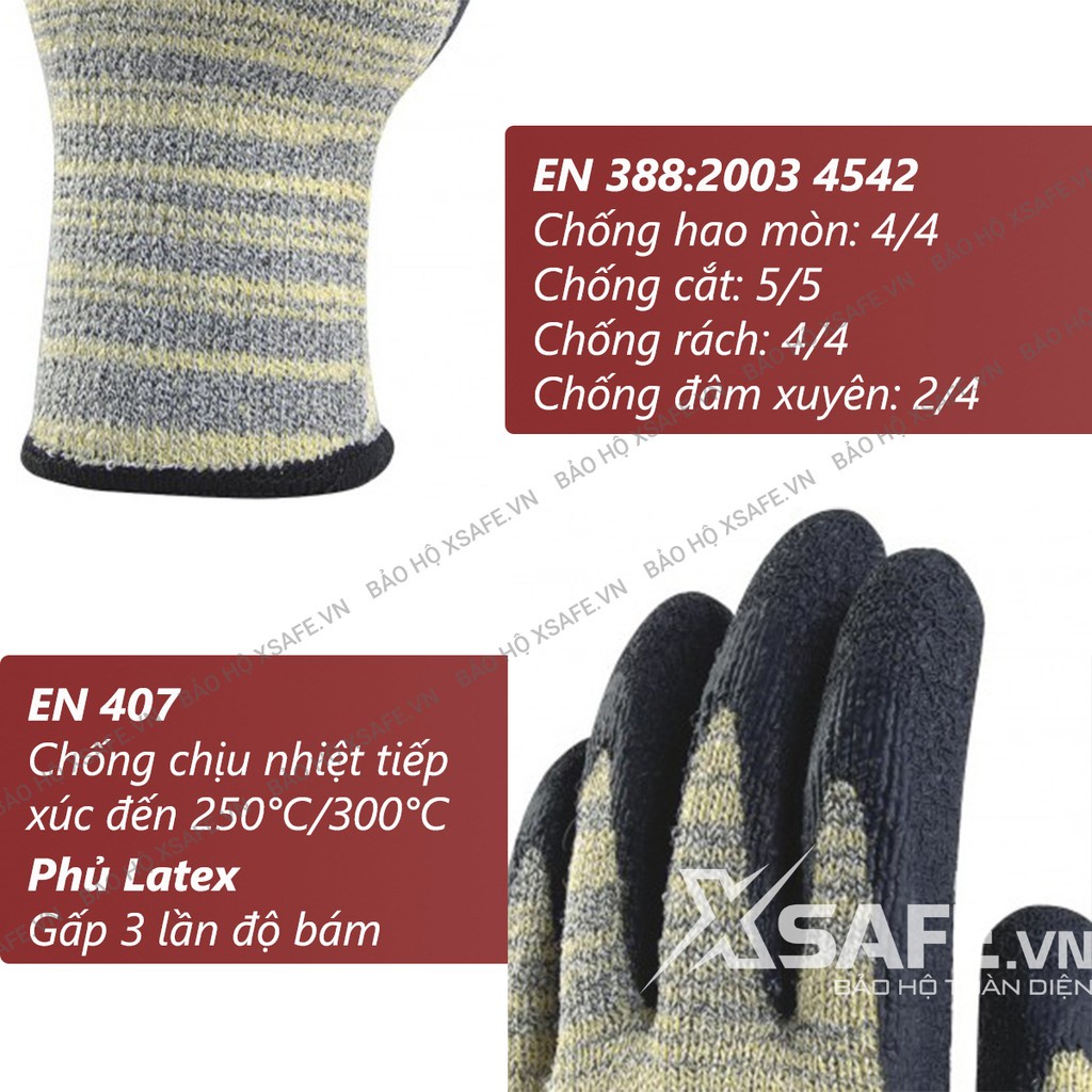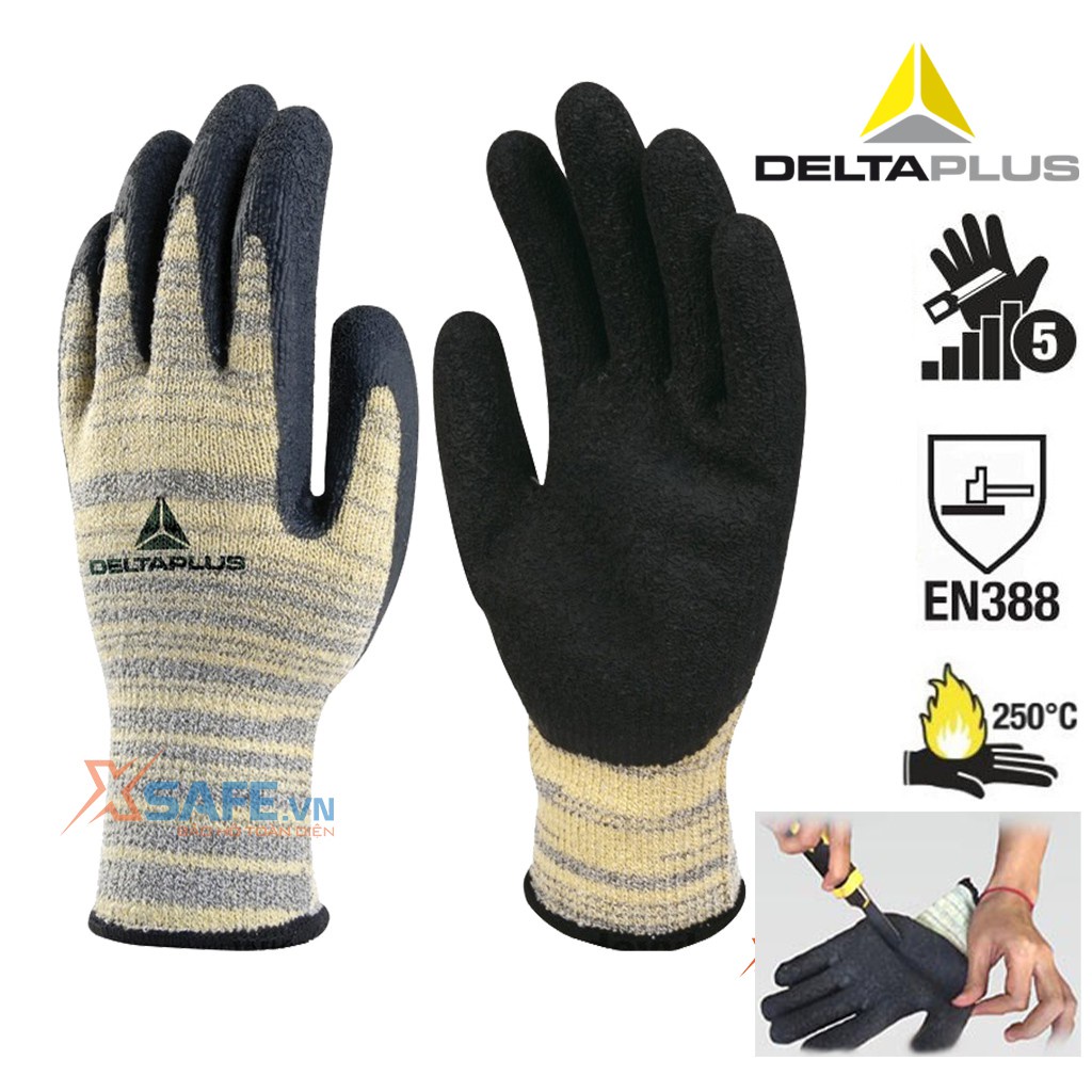 Găng tay chống cắt Deltaplus Venicut52 cấp độ 5 chịu nhiệt 250 độ C độ khéo léo cao phủ nitril chống dầu nhớt cơ khí,...