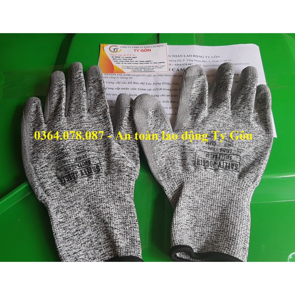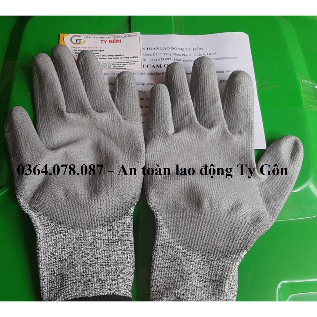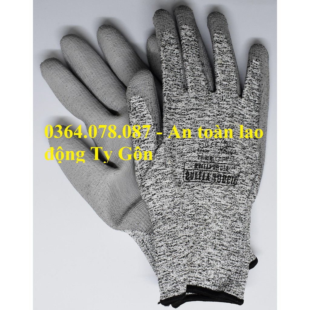 Được dệt từ sợi Poly Ethylene (HPPE) cung cấp khả năng chống cắt tốt. Găng tay được phủ lớp PU ở lòng bàn tay và các ngón tay giúp chống trơn chống dầu, tăng độ bám.