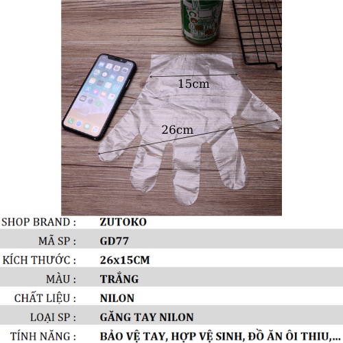 Găng tay nilon sử dụng 1 lần tiện lợi an toàn GD77🍀🍀🍀 Chào mừng quý khách đến với ZUTOKO 🍀🍀🍀