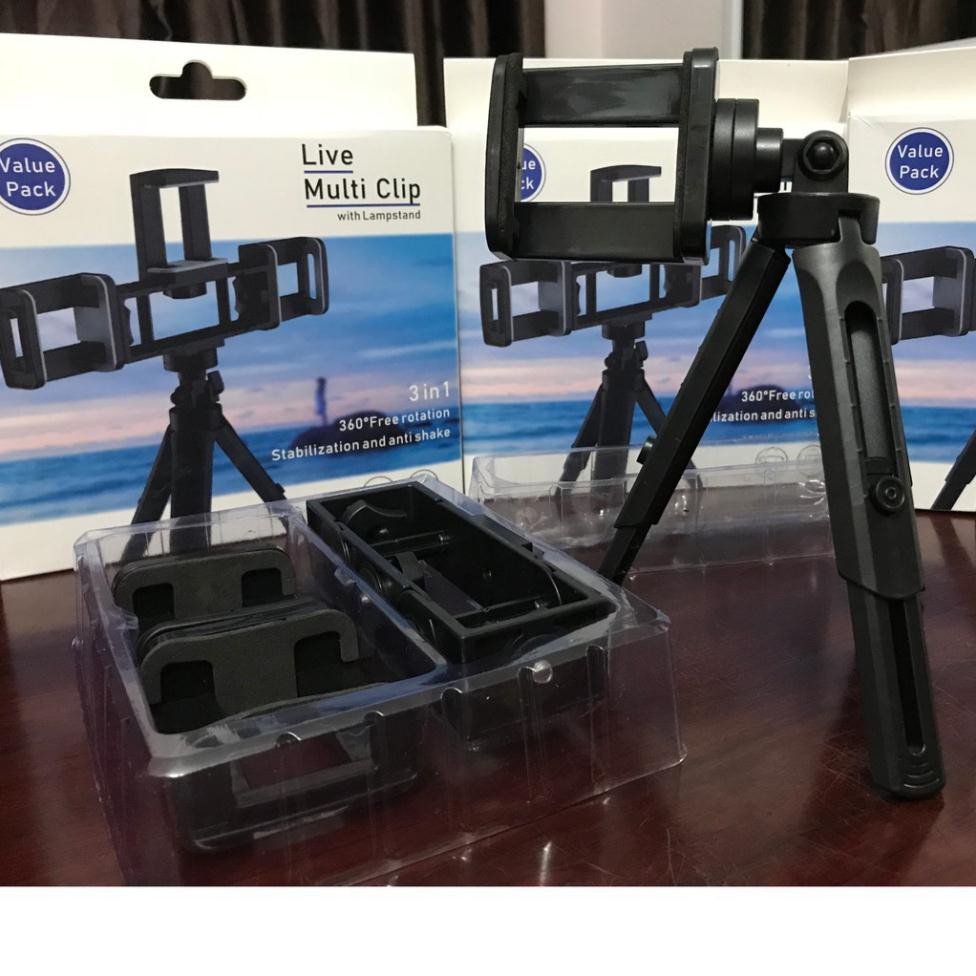 - Sản phẩm có 3 đầu kẹp điện thoại thoải mái livestream bán hàng online hay làm việc ...