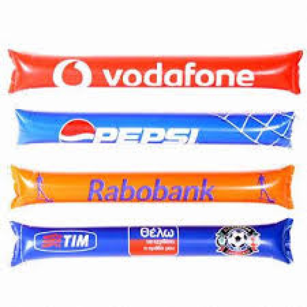 Đối với một số Cây Đập Cổ Vũ thì không có in logo quảng cáo thương hiệu mà chỉ có màu sắc. Còn những gậy cổ vũ có in logo để bán cho người tiêu dùng sẽ tạo nên tầm ảnh hưởng rất lớn và quan trọng cho việc quảng bá của nhà sản xuất.
