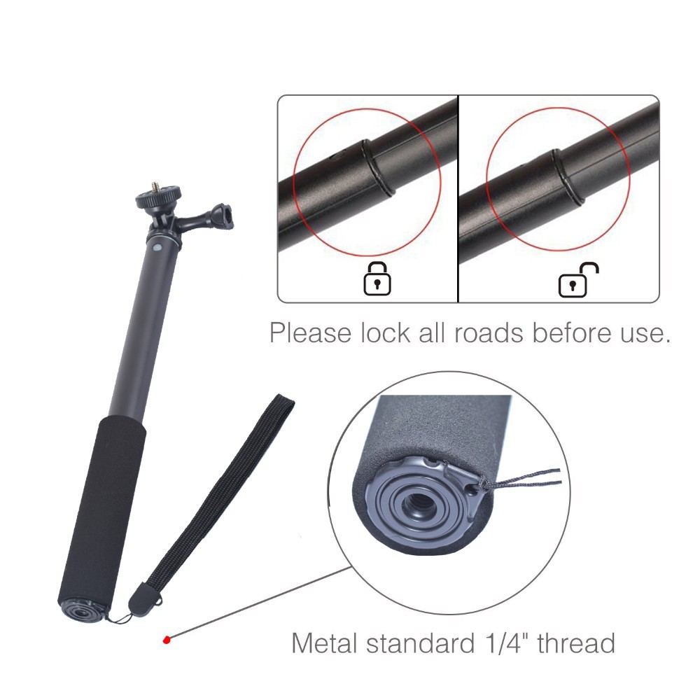 Gậy chụp ảnh selfie này tương thích hoàn toàn cho máy ảnh Gopro / SJ4000 SJ5000 / Xiaomi yi /Xiaomi yi 2 4k / máy ảnh thể thao sony v.v.