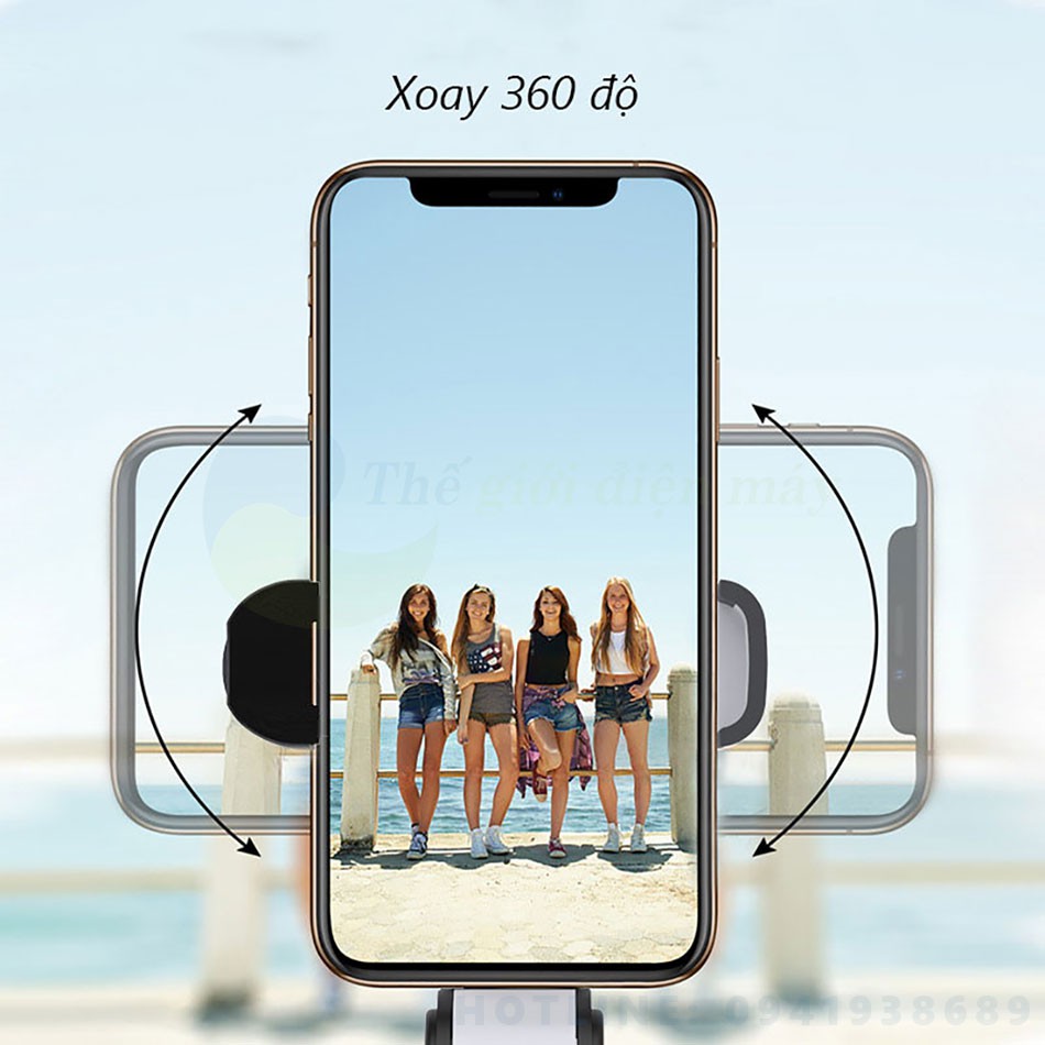 • Kẹp giữ điện thoại xoay linh hoạt, có thể giữ máy dọc hoặc ngang.