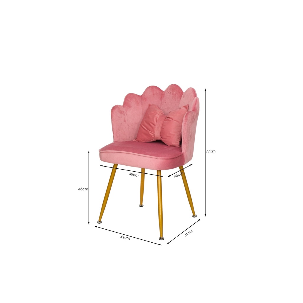 Ghế ăn, cafe, học tập, làm việc, makeup nệm vải nhung tặng nơ xinh xắn TM410A với kiểu dáng sang trọng và hiện đại, thiết kế lớp đệm nỉ nhung cực kỳ dày dặn, chân mạ vàng sang chảnh, chắc chắn làm cho không gian của bạn trở nên lộng lẫy và toả sáng. Được dùng phổ biến cho Spa, Phòng tiếp khách, Showroom, Ghế Trang Điểm, học tập, làm việc,..Màu sắc: hồng