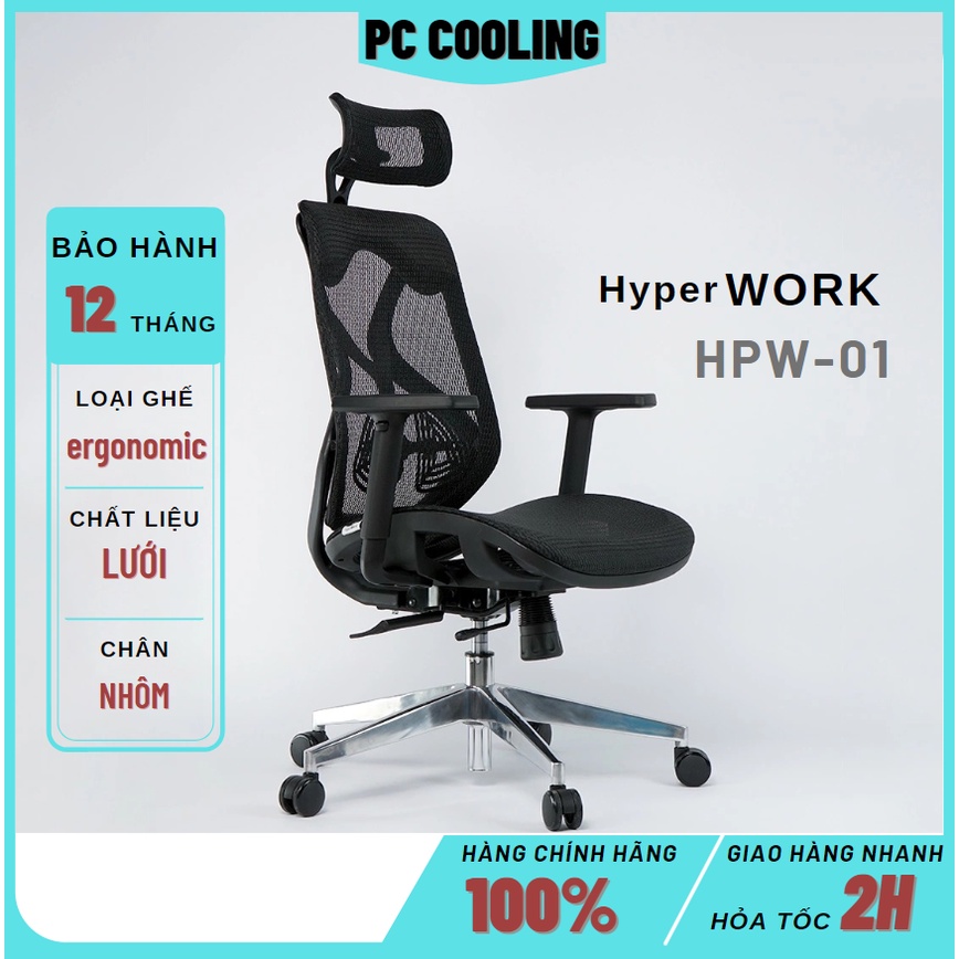 Ghế công thái học HYPERWORK HPW-01 cao cấp, chân hợp kim nhôm