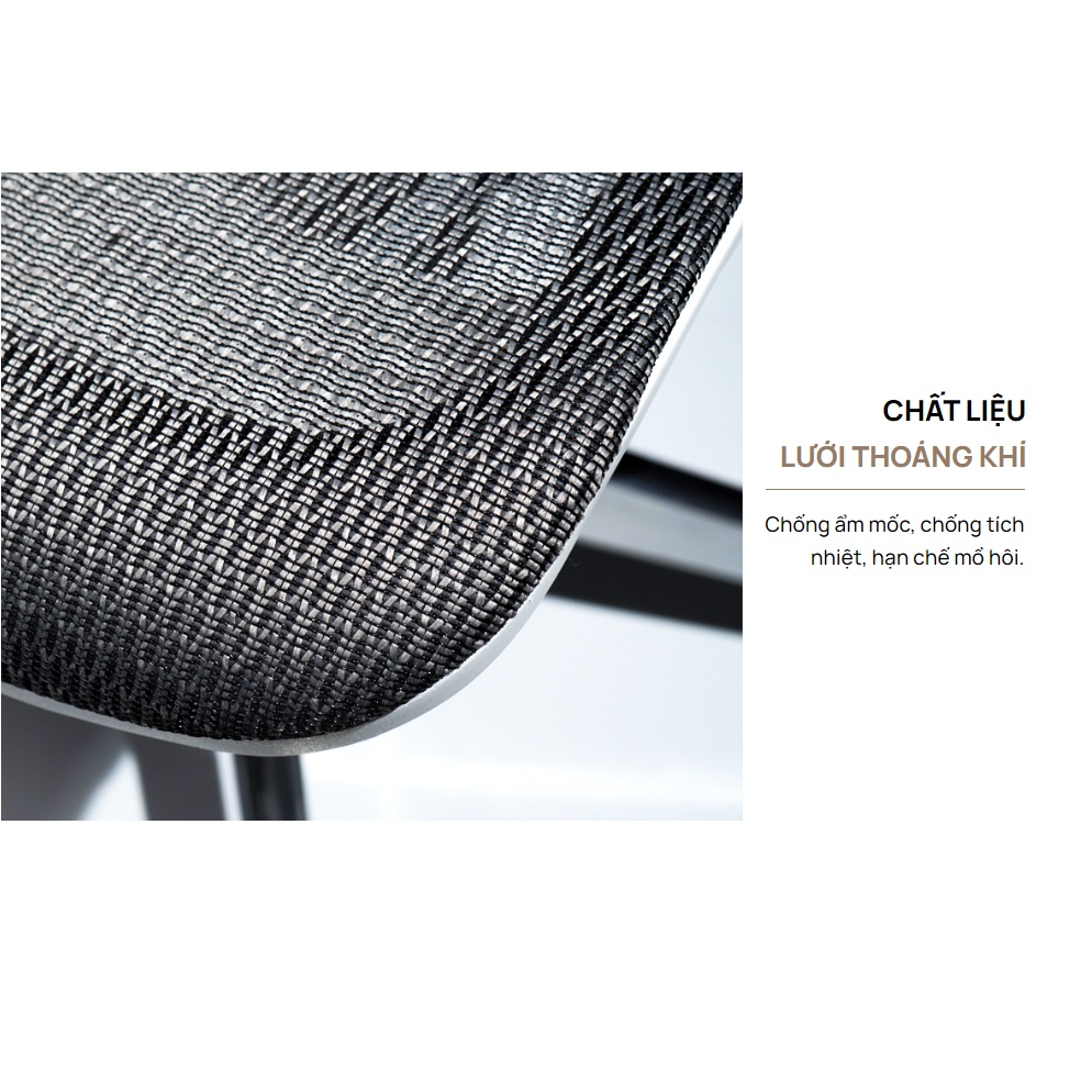 Đặc biệt phần lưng và đệm được làm bằng chất liệu lưới tinh tế, thoáng khí chống ẩm mốc, chống tích nhiệt, chống bám dính hạn chế mồ hôi khi ngồi làm việc lâu dài.