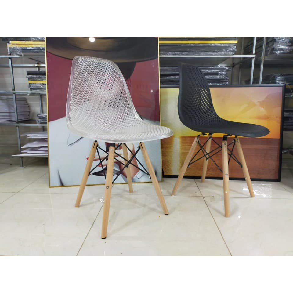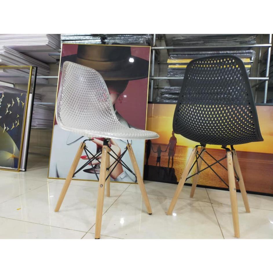 Ghế Eames ☀️FREESHIP ☀️ Chân Gỗ, Lưng Ghế Dạng Lưới, Ghế Uống Trà...Chất Liệu ABS Cao Cấp