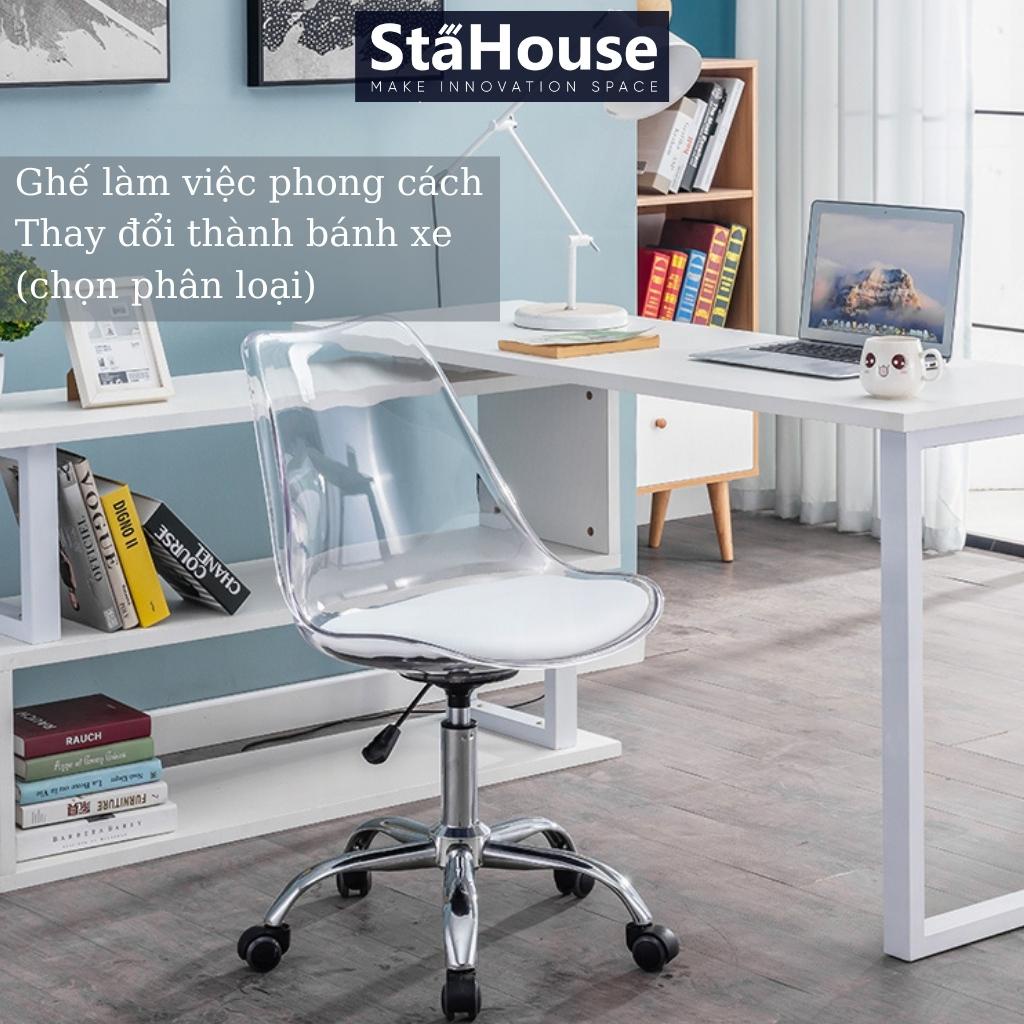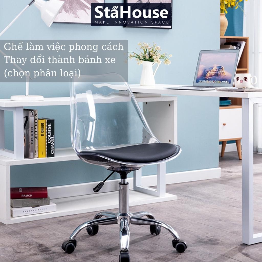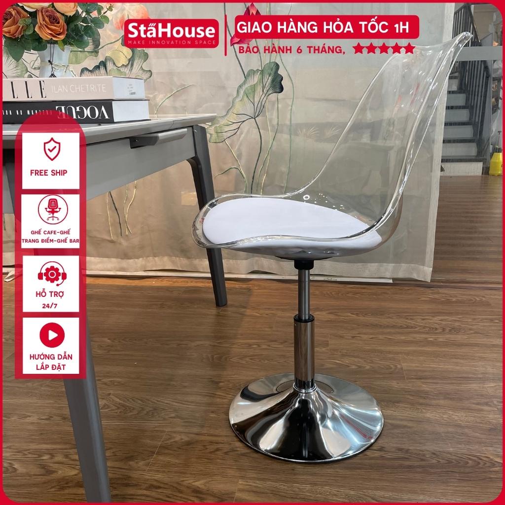 - Ghế Trang Điểm Nhựa Trong Suốt Stahouse, Ghế Café Ban Công, Ghế Làm Việc Phong Cách Bắc Âu Thời Trang GTD101 có cấu tạo từ nhựa PC dày trong suốt, kết hợp đệm êm thoải mái khi ngồi.