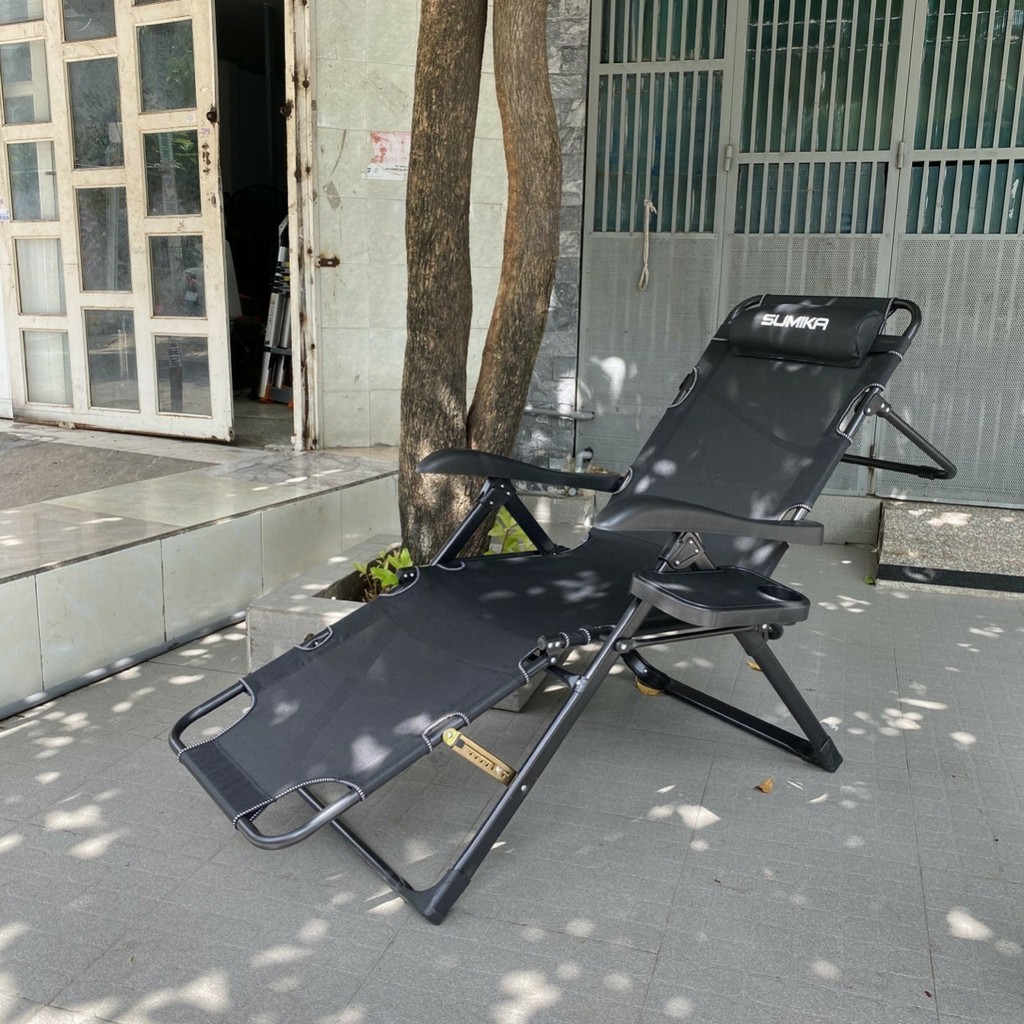 Ghế gấp xếp thư giãn đa năng cao cấp Sumika 168 (tặng khay để ly) [bảo hành lưới 1 năm, bảo hành khung 3 năm],ghế bố