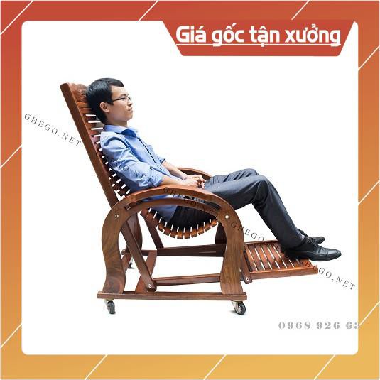 💢💢 Ghế gỗ thư giãn lim nam phi (ghế lười gỗ/ ghế bố gỗ) với thiết kế hiện đại chân có bánh xe dễ dàng di chuyển.