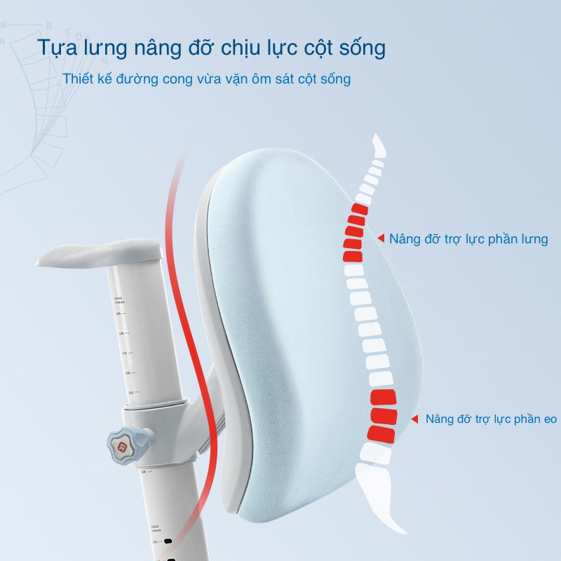 ✔ Đệm lưng đàn hồi tự điều chỉnh nâng đỡ ,ôm sát cột sống của trẻ