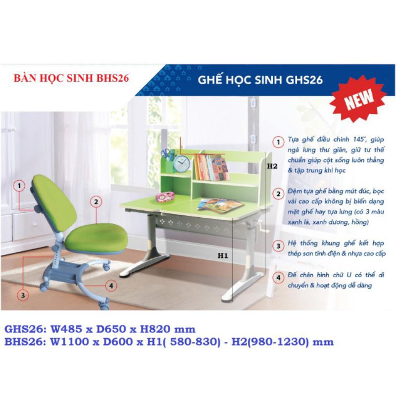 Lưu ý : Sản phẩm nên kết hợp cùng với bàn học sinh BHS26 để đồng bộ tính năng sử dụng.