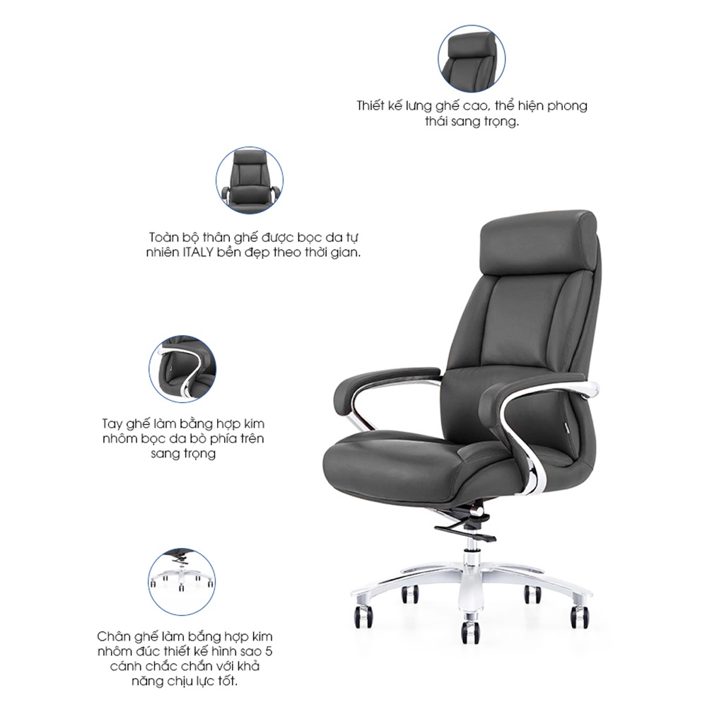 Ghế lãnh đạo GOVI Passo PA-1522A Da bò Italy nhập khẩu