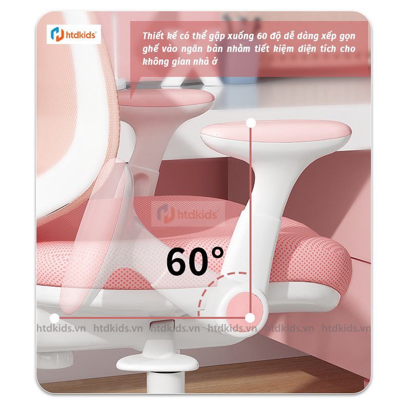 ✔️ Thiết kế có thể gập xuống 60 độ dễ dàng xếp gọn ghế vào ngăn bàn nhằm tiết kiệm diện tích cho không gian nhà ở