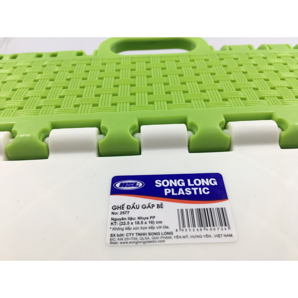 - GHẾ NHỰA XẾP SONG LONG thích hợp với mọi không gian trong nhà bạn, Mẹ có thể dùng ngồi hàng ngày làm việc nội trợ như lặt rau, rửa chén và cho bé làm ghế ngồi chơi trong nhà.… mà không tốn nhiều diện tích.
