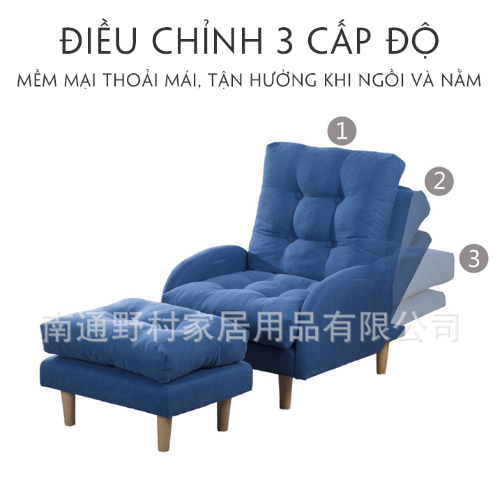Ghế sofa thư giãn, Ghế lười kèm đôn chất liệu vải, có điều chỉnh 3 cấp độ, có thể tháo ra vệ sinh