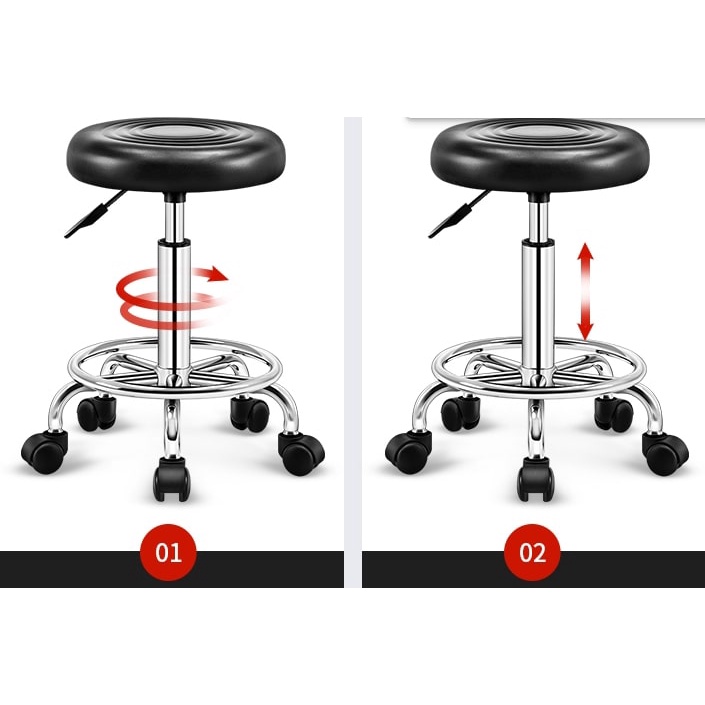 Ghế Spa Xoay 360 Độ Không Tựa Inox Cao Cấp, Ghế Đẩu Tròn Makeup Gội Đầu Có Bánh Xe Di Chuyển Tiện Lợi