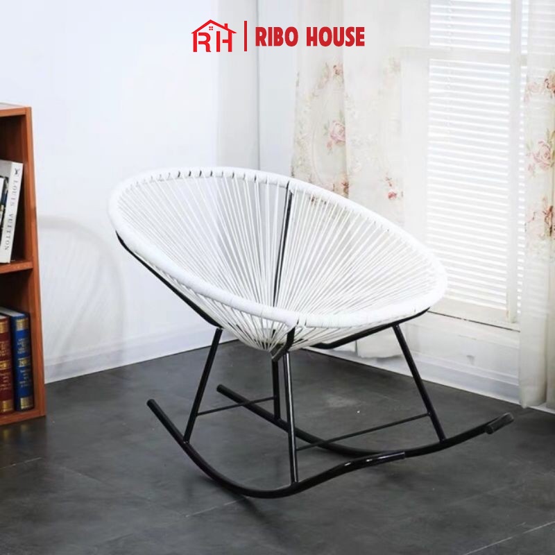 Ghế thư giãn bập bênh RIBO HOUSE giả mây nhựa khung kim loại, ghế để ban công phòng khách trang trí quán cà phê RIBO207