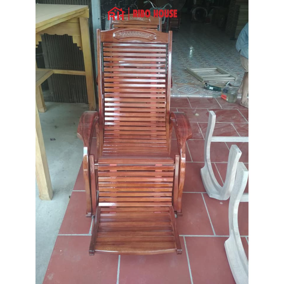 Ghế thư giãn RIBO HOUSE gỗ LIM đa năng vừa dùng để tựa lưng đọc sách và ngả lưng ngủ có bánh xe dễ dàng di chuyển RIB187