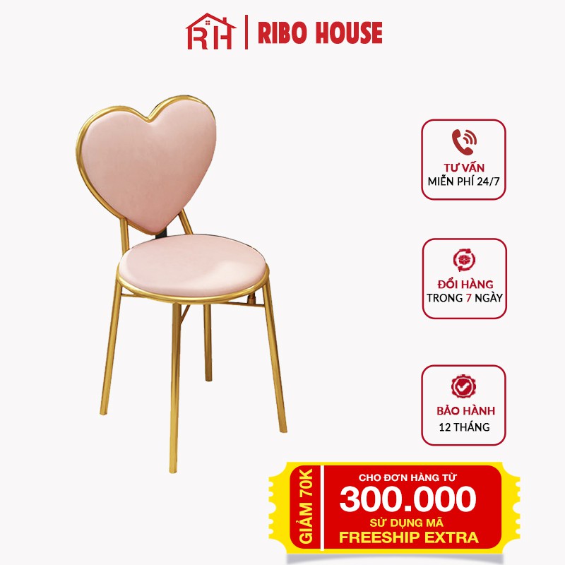 Ghế tim bàn trang điểm RIBO HOUSE bọc đệm, ghế trang trí phòng khách tiệm nails spa quáncà phê RIBO60