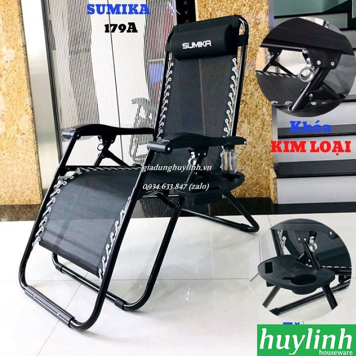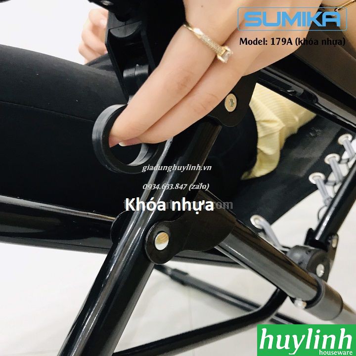 Ghế xếp gấp thư giãn Sumika 179A có 2 phiên bản khóa kim loại hoặc khóa nhựa với chất lượng cao, vải lưới bằng Textilene cao cấp mềm mại thoải mái với tải trọng tới 200kg.Huy Linh phân phối và bảo hành chính hãng tại Sumika Việt Nam.