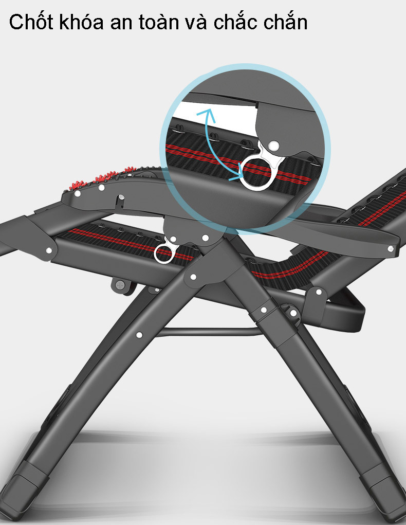 Ngả tối đa 168 độ, giúp cho tư thế nằm được thoải mái nhất .Có thể gập gọn, tiện mang vác khi đi xa .