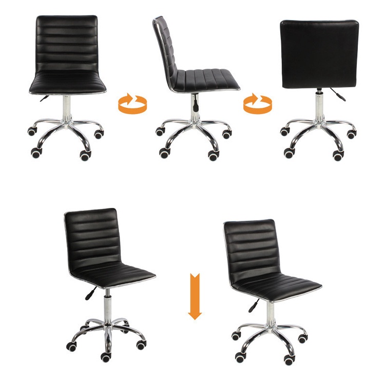 Ghế xoay khung bằng thép cao cấp, chống biến dạng, chịu lực tốt, có bánh xe lăn, xoay tròn 360 độ. Kết hợp nệm da PU mềm mại, trang nhã, sản phẩm sẽ giúp không gian của quý vị thêm đẳng cấp, sang trọng.Ghế có khả năng xoay 360 độ, giúp người nhìn quan sát các góc rộng hơn, dễ dàng di chuyển khi ngồi làm việc, giải trí cùng bạn bè.