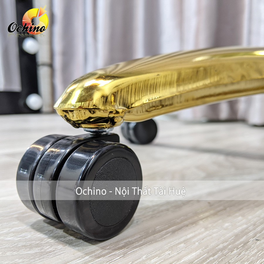 👉Khung ghế làm bằng kim loại mạ vàng chuẩn cho cảm giác khỏe khoắn, chắc chắn và đặc biệt dễ bảo quản lâu dài, không bị gỉ sét. Ghế xoay spa dễ vệ sinh và lau chùi.