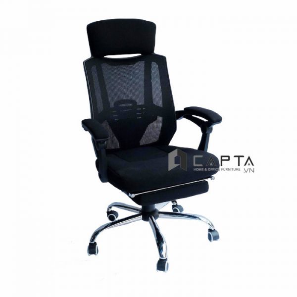 Ghế xoay văn phòng lưng cao có gác chân nằm thư giãn CM4274-M Nội thất Capta Ghế trưởng phòng lưng lưới nệm vải màu đen khung nhựa PP chân thép mạ chrome có bánh xeChất liệu: Lưng và nệm lưới vải.Ta...- Giao hàng toàn quốc