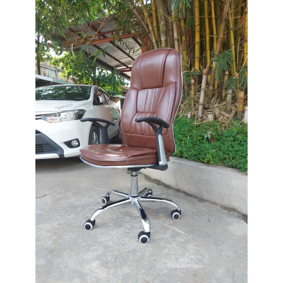 + Ghế mặt nệm mút bọc da kết hợp chân kim loại mạ Crome sáng bóng có bánh lăn.