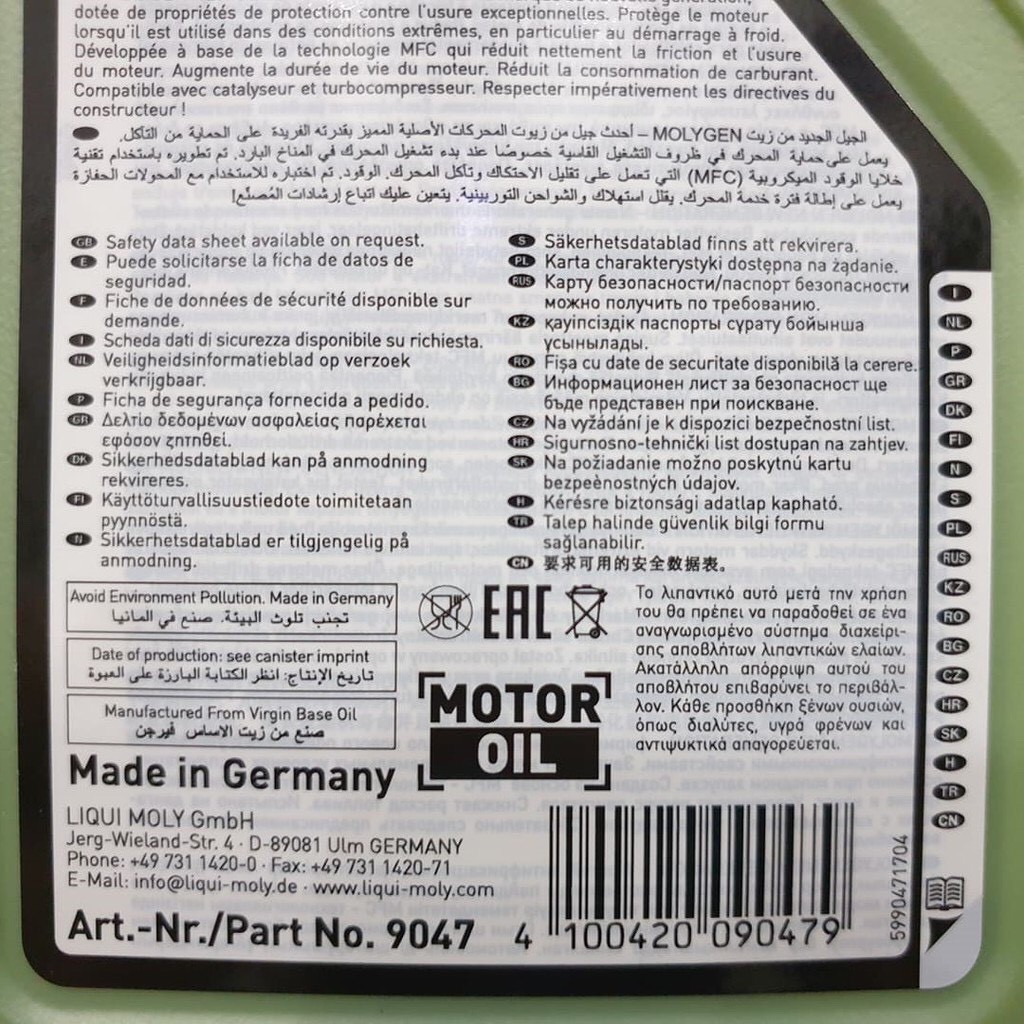 Dầu nhớt thế hệ mới chuẩn SN/CF Liqui Moly Molygen New Generation 5W-30; 5W-40 9047 1lit